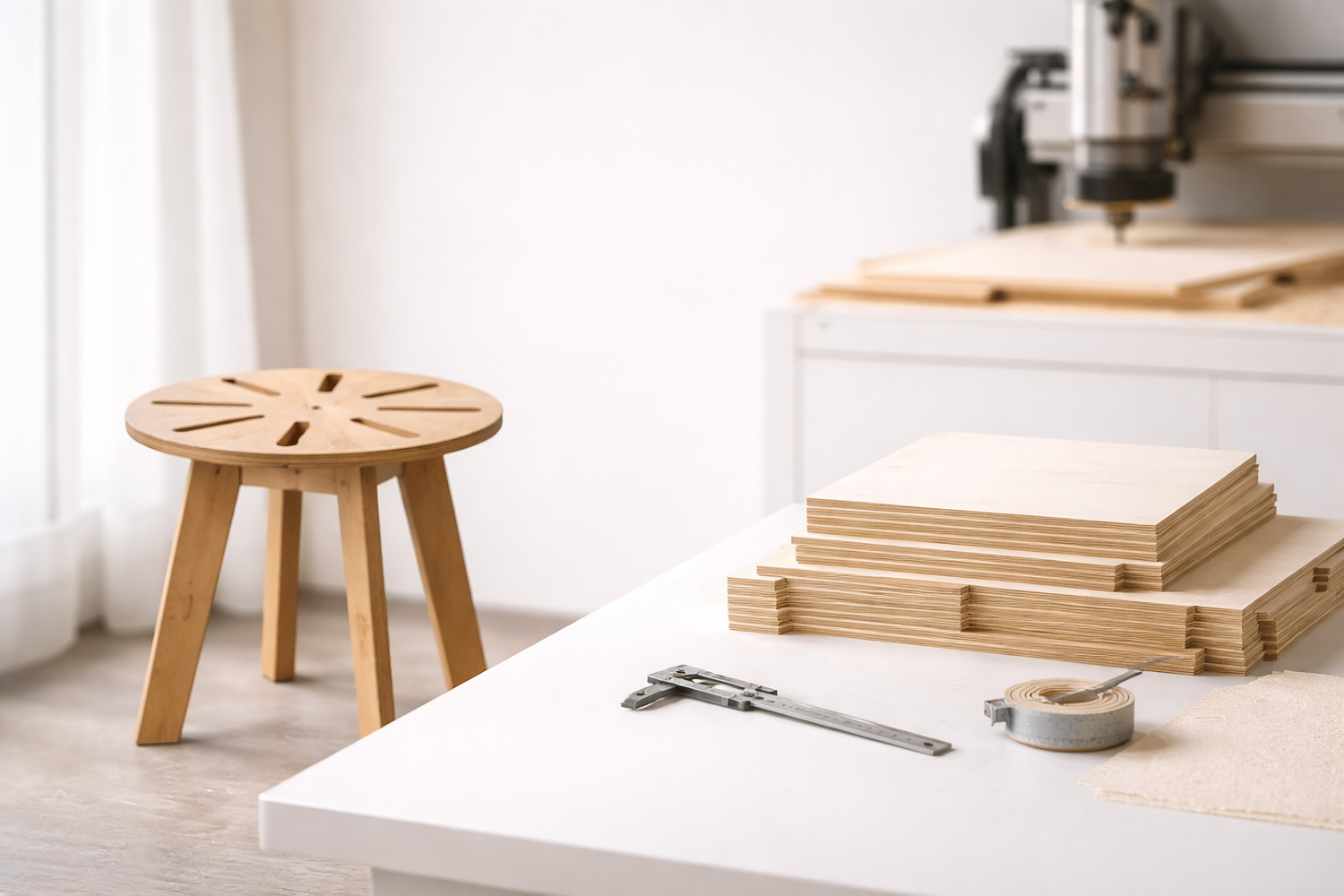 “Crafting minimalist CNC furniture from birch plywood,
